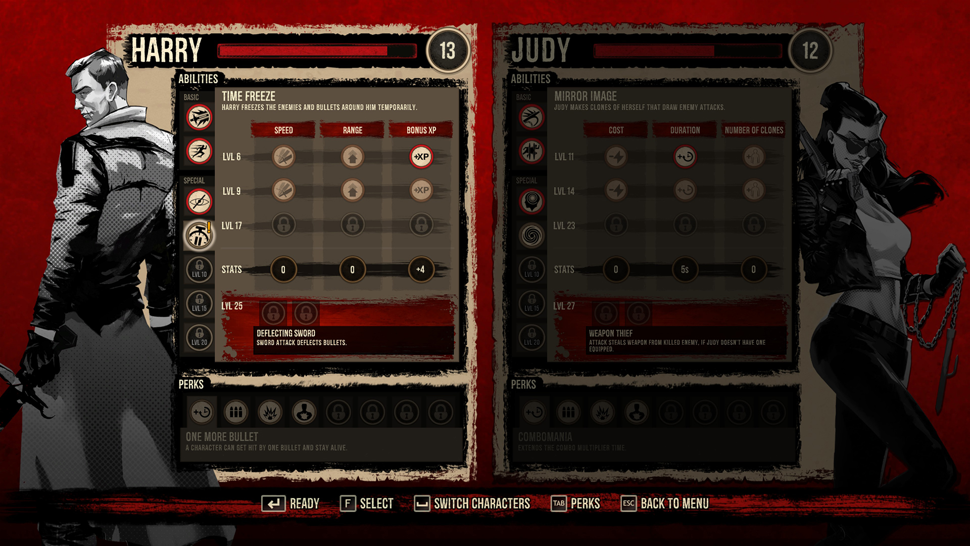 Η Judy και ο Harry έχουν το δικό τους ξεχωριστό στυλ παιχνιδιού το οποίο έρχεται με ένα ανεξάρτητο level up system, που συνδέεται με ένα ανεξάρτητο skill tree. Για να διατηρήσετε την ισορροπία απαιτείται να κερδίζετε EXP με κάθε χαρακτήρα, πράγμα που σημαίνει ότι θα χρειάζεται να χρησιμοποιείτε και την Judy και τον Harry (όταν παίζετε σόλο) για να τους κρατήσετε στο ίδιο επίπεδο. Βέβαια, είναι δυνατόν να ολοκληρώσετε το παιχνίδι χωρίς να βασίζεστε σε δεξιότητες και ικανότητες, οπότε ακόμα και αν προχωρήσετε τον ένα χαρακτήρα πολύ πιο πέρα από τον άλλο, το gameplay παραμένει σε μεγάλο βαθμό ισορροπημένο.