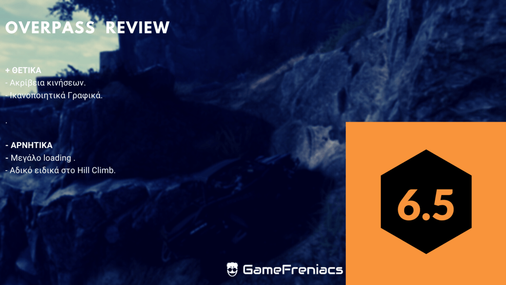 Κλείνοντας θα λέγαμε ότι το Overpass βρίσκει μια ειδική θέση στο Racing genre που λίγοι τίτλοι μπορούν να καλύψουν αυτή την στιγμή. Το παιχνίδι έχει ως σκοπό να ικανοποιήσει ένα ειδικό κοινό, γι’ αυτό αν είστε παίκτης που ψάχνει ένα ακόμη racing τίτλο στον οποίο η ταχύτητα είναι αυτοσκοπός καλύτερα να προσπεράσετε το Overpass με ιλιγγιώδη ταχύτητα.