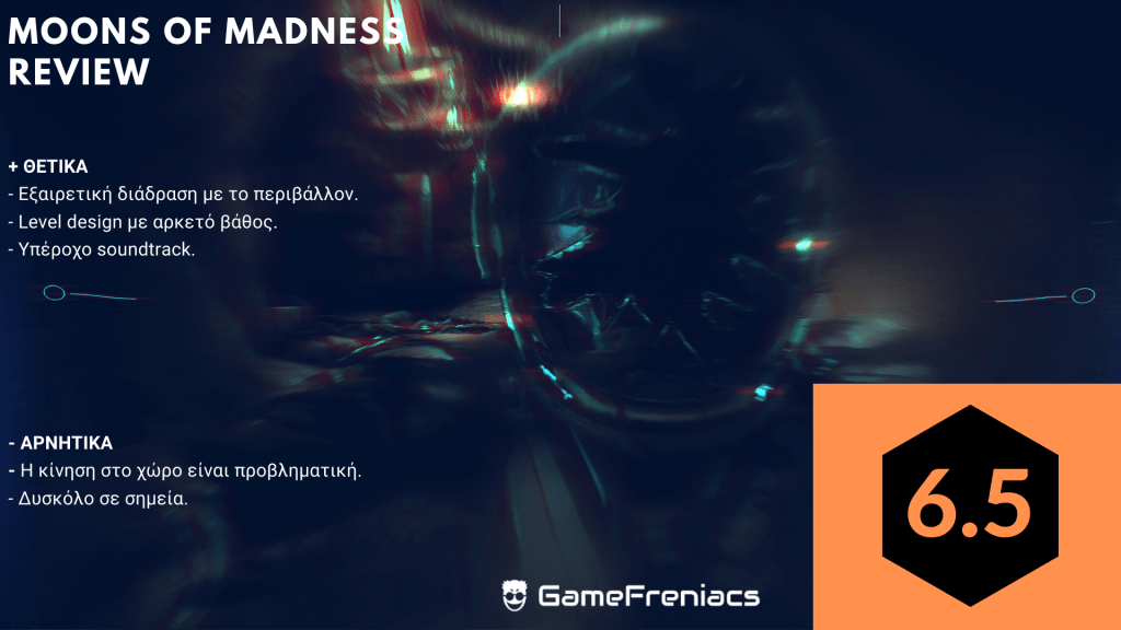 Το review έγινε στην έκδοση του Playstation 4 και ήταν παροχή του developer. Το Moons of Madness είναι διαθέσιμο τώρα σε Playstation 4, Xbox One και το PC.