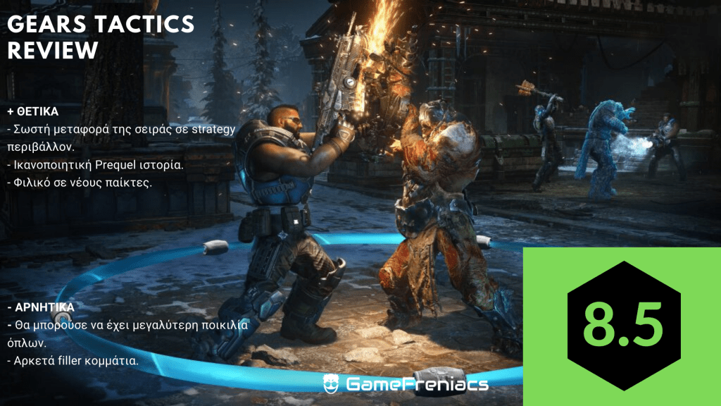 Το Gears Tactics είναι μια υπέροχη προσθήκη στο franchise και ελπίζω να ξεχωρίσει ως η δική της σειρά και να έχει συνέχεια. Αποφεύγει πολλές από τις παγίδες του είδους και παρέχει μια βελτιωμένη εμπειρία που δίνει στην σειρά την φρεσκάδα που χρειαζόταν. Οι σκληροπυρηνικοί θαυμαστές των turn based strategy παιχνιδιών μπορεί να το βρουν πολύ εύκολο, αλλά οι περισσότεροι θα αποκομίσουν μια πολύ ευχάριστη εμπειρία.