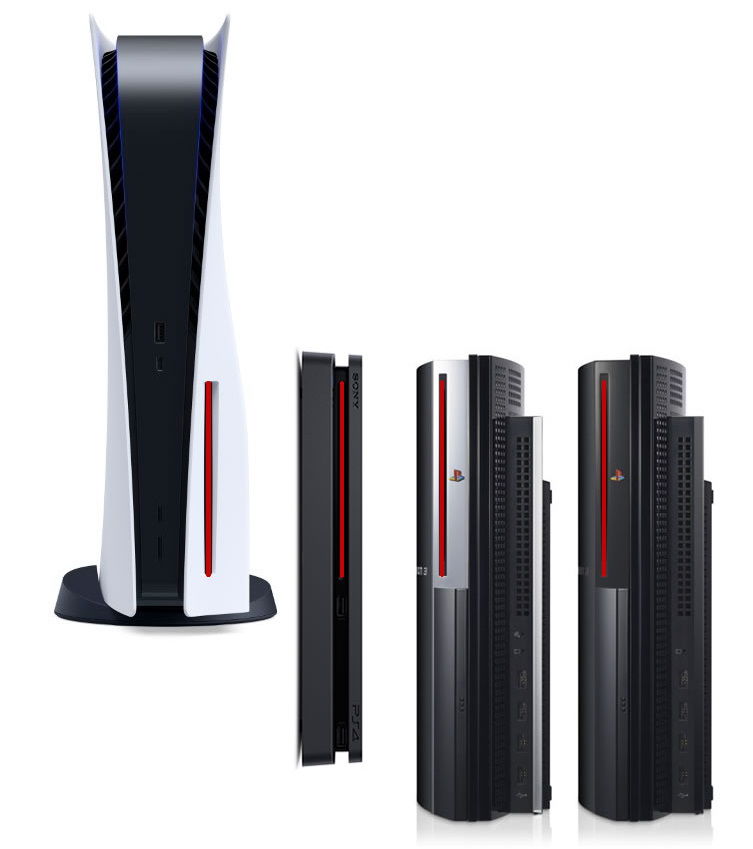 Μπορούμε να δούμε ότι το Ps5 έχει διπλάσιο πάχος από το PS4 και περίπου το ίδιο με το PS3, αλλά είναι ακόμη ψηλότερο από το αρχικό fatboy της Sony, περίπου 20% ψηλότερο στην πραγματικότητα.