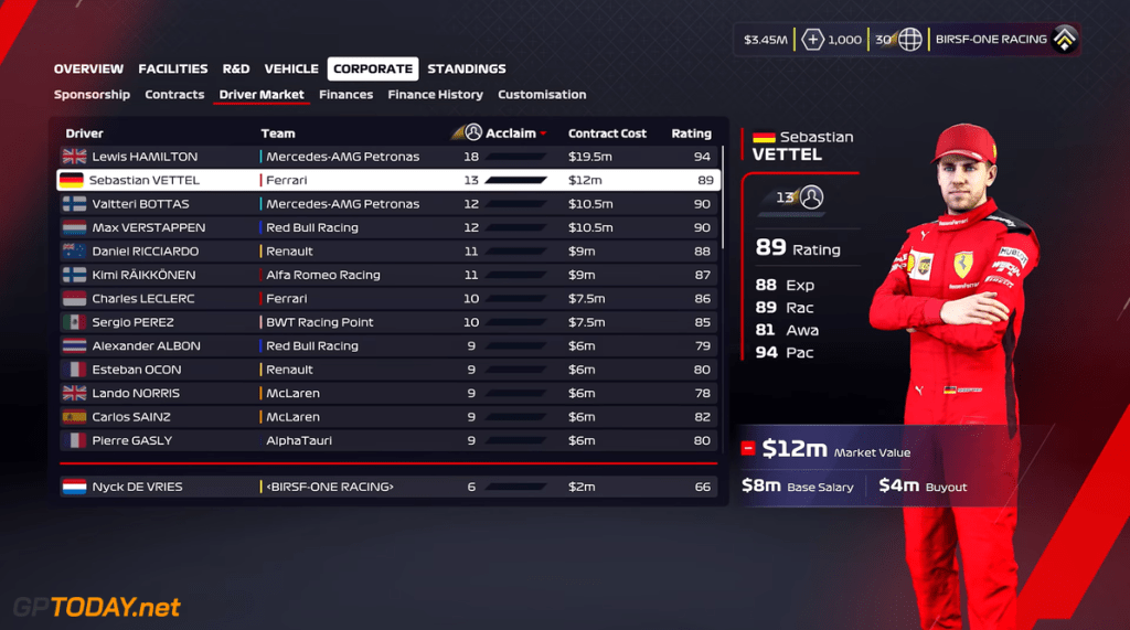 Όπως και στο F1 2019, θα δείτε μεταγραφές οδηγών από τη μία σεζόν στην άλλη, αλλά τώρα μπορείτε να έχετε ενεργό ρόλο σε αυτήν. Θα μπορείτε να συγκρίνετε τους οδηγούς F1 και F2 με την εμπειρία τους, το Racecraft, το Awareness και το Pace και, στη συνέχεια, να προσπαθήσετε να δελεάσετε τον στόχο σας στην ομάδα σας. Όμως, θα πρέπει να έχετε αρκετό κύρος σαν ομάδα για να μπορέσετε να πείσετε ένα από τα μεγάλα αστέρια να ενταχθεί στην ομάδα σας.