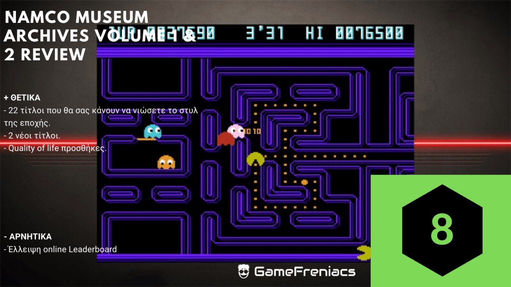 Το review έγινε στην έκδοση για PC και ήταν παροχή της Bandai-Namco επίσημου αντιπροσώπου στην Ελλάδα. Το NAMCO MUSEUM ARCHIVES VOLUME 1 & 2 είναι διαθέσιμο τώρα στο Playstation 4, Xbox One, Nintendo Switch και στο PC.