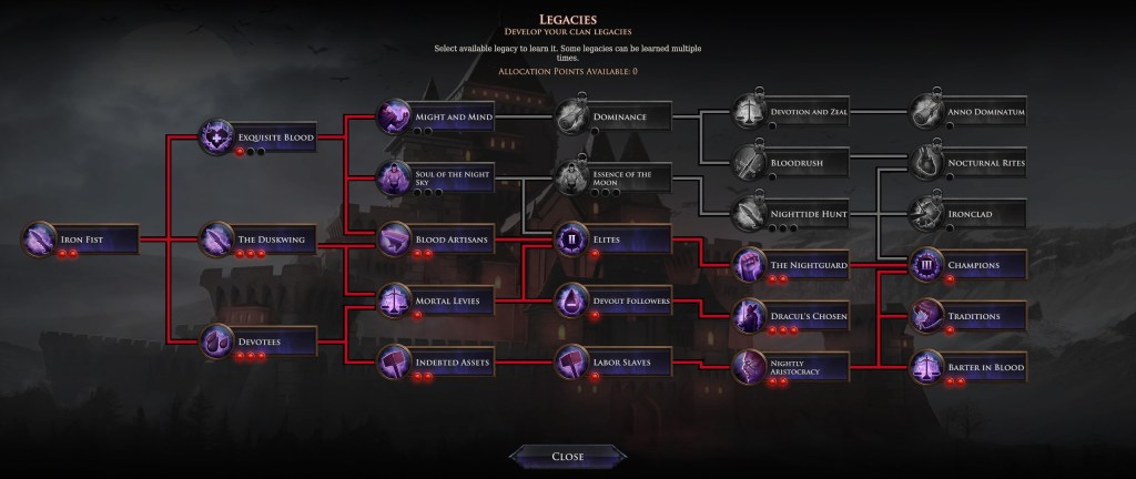 Τόσο τα στοιχεία στρατηγικής όσο και της τακτικής του παιχνιδιού ενισχύονται σε μεγάλο βαθμό από τις διαφορές μεταξύ των τριών φυλών Vampires, που έρχονται με πολύ διαφορετικές μονάδες και skill trees. Μερικοί από τους μηχανισμούς που αφορούν τις μονάδες είναι ιδιαίτερα ενδιαφέροντες, όπως οι μηχανισμοί Keywords, οι οποίοι παρέχουν στις μονάδες μοναδικά μπόνους. Το εμπλεκόμενο RNG μπορεί να δυσκολευτεί να πάρει το Keyword που αναζητά, αλλά δεν είναι τόσο σημαντικό σε σημείο, που η χρησιμότητα οποιασδήποτε μονάδας να εξαρτάται αυστηρά από αυτά. Περισσότερο βάθος δίνεται επίσης από το σύστημα εξοπλισμού, το οποίο επιτρέπει στους Lords να βρουν διαφορετικά αντικείμενα που μπορούν να αποκτηθούν μετά από μάχες ή σφυρηλατώντας τα σε έναν σιδηρουργό με αντάλλαγμα αίματος για να αποκτήσουν μια σειρά από μπόνους. Όλοι αυτοί οι μηχανισμοί παρέχουν στους παίκτες ένα επίπεδο προσαρμογής που δεν συναντάται συχνά στα παιχνίδια στρατηγικής.