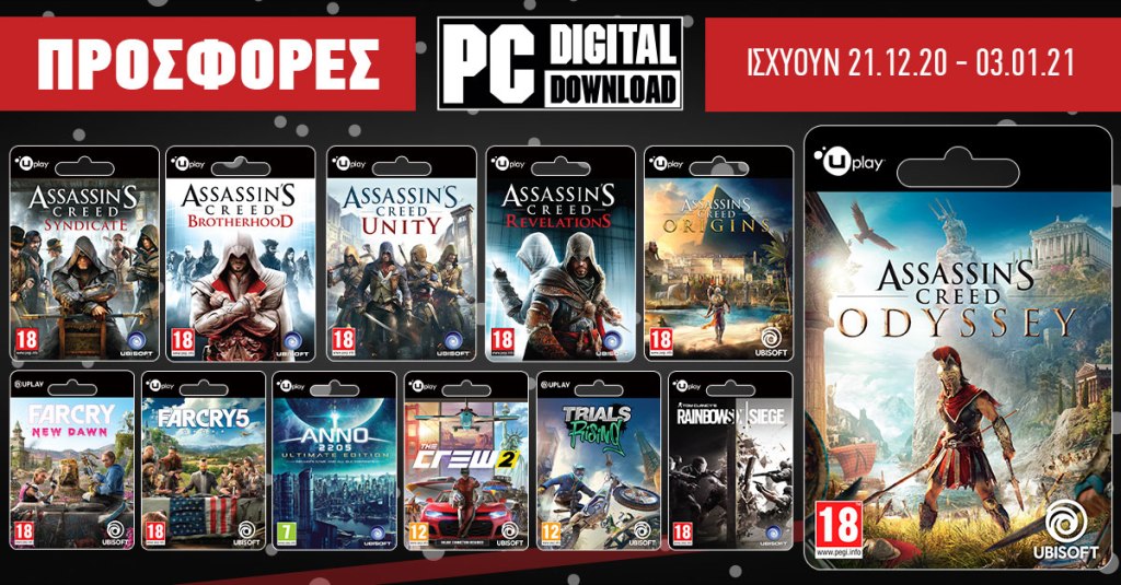 Η CD Media επίσημός αντιπρόσωπος της Ubisoft στην χώρα μας, ενημέρωσε για τις προσφορές που θα «τρέξουν» κατά την περίοδο των γιορτών σε pc τίτλους υπό την μορφή game cards.