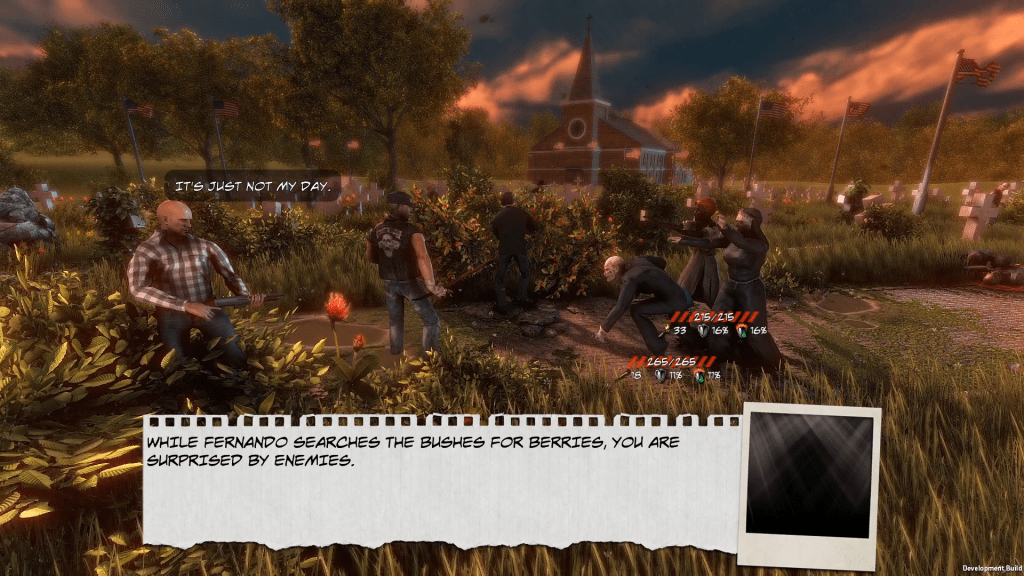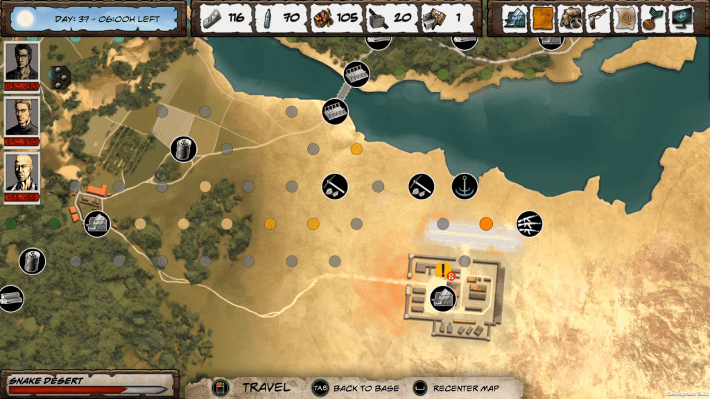 Εκτός από τη διεύθυνση του αρχηγείου σας, μπορείτε να εξερευνήσετε την περιοχή. Κάθε μέρα μπορείτε να την εξερευνήσετε δύο φορές, την ημέρα ή τη νύχτα, με μια ομάδα τριών χαρακτήρων (ή λιγότερων). Η εξερεύνηση βασίζεται στο χρόνο, μπορείτε να μετακινηθείτε στον χάρτη όπως θέλετε, από σημείο σε σημείο, αλλά μετά από μερικούς ελιγμούς, θα αναγκαστείτε να επιστρέψετε στη βάση σας. Μεταξύ των σημείων, μπορεί να συμβούν τυχαία γεγονότα. θα συναντήσετε εμπόρους με σωματοφύλακες, αμάχους σε κίνδυνο ή ομάδες εχθρών. Μπορείτε να προσπαθήσετε να παζαρέψετε τις τιμές του εμπόρου ή να τους απειλήσετε, με τη δυνατότητα να προκαλέσετε μάχη με τους σωματοφύλακες τους. Στην περίπτωση των επιζώντων, εάν τους σώσετε, θα σας ανταμείψουν.