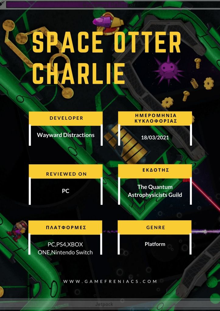 Το Space Otter Charlie μπορεί κάλλιστα να γίνει ένα εξαιρετικό παράδειγμα το τι μπορεί να προσφέρει η ελευθερία που διέπει τους ανεξάρτητους developers. Δημιουργήθηκε από το studio Wayward Distractions και έγινε διανομή από το The Quantum Astrophysicists Guild, πρόκειται για ένα παιχνίδι παζλ-πλατφόρμας στο διάστημα, όπου οι παίκτες παίρνουν τον έλεγχο μιας αξιολάτρευτης βίδρας που περιηγείται σε μια ποικιλία εγκαταλελειμμένων διαστημικών σταθμών, αστεροειδών και άλλων περίεργων τοποθεσιών.