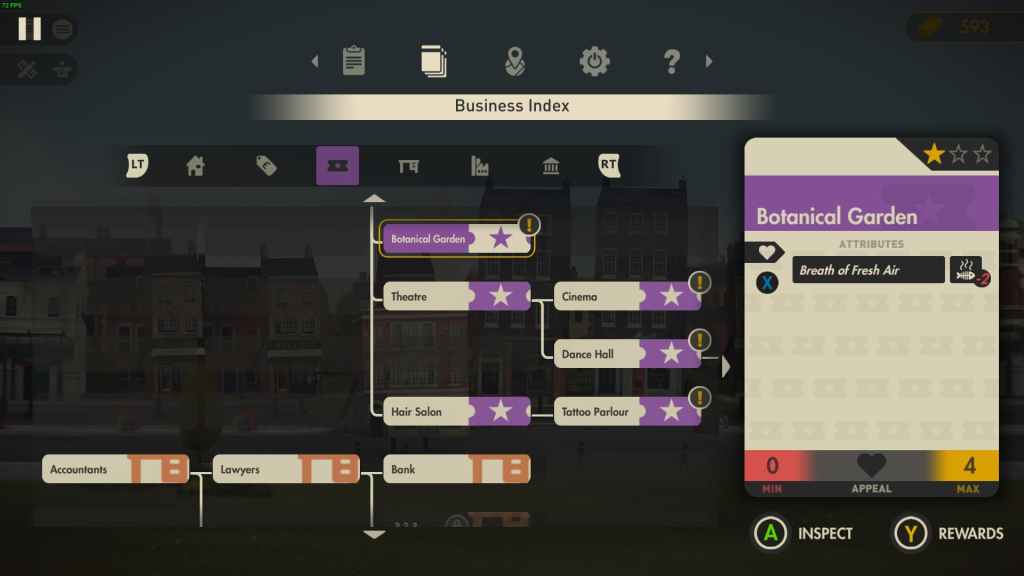 Έτσι, αντί να χτίζετε μια πόλη για να καθησυχάσετε τους ανθρώπους που ζουν εκεί, χτίζετε για να καθησυχάσετε τα ίδια τα κτίρια. Βλέπετε, όλα έχουν πολύ συγκεκριμένες απαιτήσεις. Ένα συγκρότημα ενοικιαζόμενων διαμερισμάτων θα ήθελε να βρίσκεται κοντά σε μια παμπ και άλλους κατοίκους, για παράδειγμα, ενώ ένα δικηγορικό γραφείο θα ευδοκιμήσει αν βρίσκεται κοντά σε ενεργούς πολίτες και ένα αξιοπρεπές εστιατόριο. Σε όλο το παιχνίδι θα πρέπει συχνά να αναβαθμίζετε τα κτίριά σας και για να το κάνετε αυτό θα πρέπει να πληροίτε όλα τα κριτήρια τους.