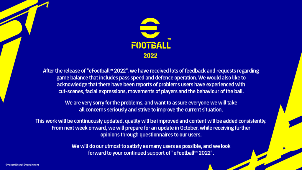 Το … Demo? του free to play eFootball 2022 κυκλοφόρησε και οι αντιδράσεις ήταν τόσο σφοδρές που η Konami αναγκάστηκε να εκδώσει απολογητικό μήνυμα μήπως και κατευνάσει κάπως τα πνεύματα των εξαγριωμένων φίλων της σειράς. Είναι όμως τα πραγματά τόσο άσχημα; Μια ματιά στο video που ακολουθεί θα σας βοηθήσει να αποκτήσετε την δική σας άποψη.