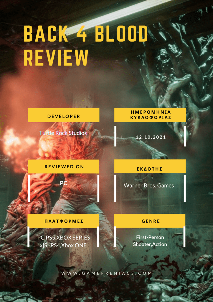 Από το πρώτο Left 4 Dead που κυκλοφόρησε το 2008, πολλά παιχνίδια προσπάθησαν να επαναλάβουν τη συγκεκριμένη φόρμουλα του co-op shooter, χωρίς να έχουν την ανάλογη επιτυχία. Mε το Back 4 Blood, τo Turtle Rock Studios επιστρέφει στην ίδια φόρμουλα ακόμα και με το όνομα του νέου παιχνιδιού να αντικατοπτρίζει το παλιό.