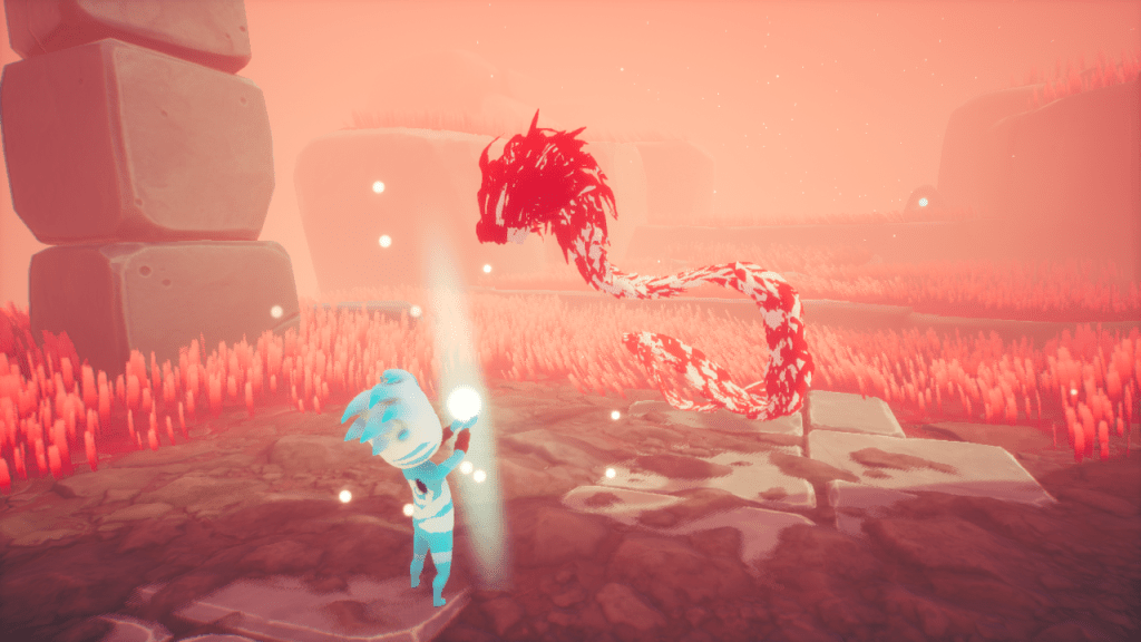 Ευτυχώς, το platforming λειτουργεί καλά. Η λέξη απαλά είναι ο καλύτερος δυνατός τρόπος για να περιγράψεις την αίσθηση της περιπλάνησης, του άλματος πάνω από βράχους, της αιώρησης ανάμεσα σε πλατφόρμες και του γλιστρήματος γύρω από όμορφες όψεις. Η κάμερα ανοίγει όταν εισέρχεστε σε μια νέα περιοχή και δίνει την ψευδαίσθηση ενός τεράστιου κόσμου για εξερεύνηση, αλλά στην πραγματικότητα το Scarf είναι βασικά γραμμικό και κάθε κόσμος έχει σχεδιαστεί με αρθρωτό τρόπο. Μπορείτε να προσπαθήσετε να ανακτήσετε τους ρούνους του κασκόλ σας με όποια σειρά θέλετε, αλλά η διαδικασία είναι τελικά παρόμοια σε κάθε κόσμο.