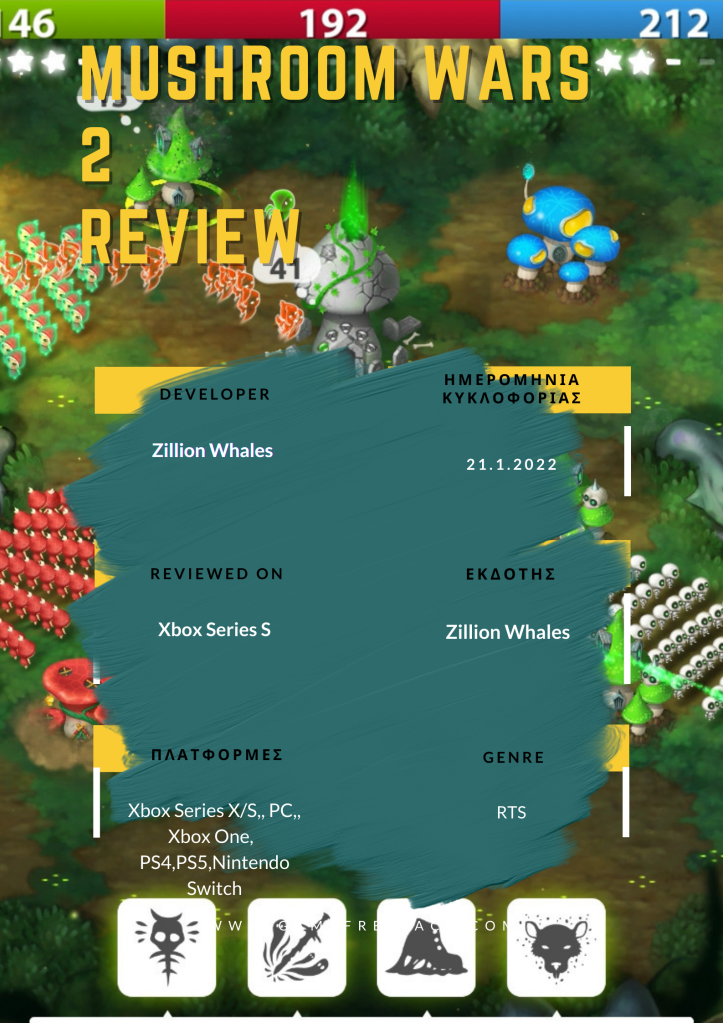 Έχουν περάσει πάνω από 10 χρόνια από τότε που το Creat Studios κυκλοφόρησε το ευρέως δημοφιλές Mushroom Wars. Τώρα με ένα νέο studio στα ηνία και με φρέσκο υλικό, έχουμε επιτέλους την πολυαναμενόμενη συνέχεια, το Mushroom Wars 2. Άραγε βασίζεται στη πετυχημένη συνταγή που έχει χτίσει πρωτότυπο και έχει φέρει στο τραπέζι νέες ενδιαφέρουσες ιδέες; Ή ακόμα καλύτερα, είναι ένα καλό παιχνίδι από μόνο του;