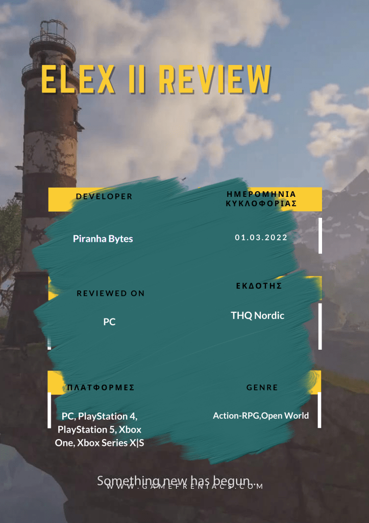Ήμουν από τους ανθρώπους που απόλαυσαν πολύ το πρώτο ELEX, παρά τα ελαττώματα του. Υπάρχει πάντα κάτι ενδιαφέρον σε έναν νέο ανοιχτό κόσμο για εξερεύνηση, με ενδιαφέρουσες ιστορίες και μεγάλη πρόκληση και το ELEX είχε όλα τα παραπάνω. Από τότε που ανακοινώθηκε η ημερομηνία κυκλοφορίας του ELEX 2, ήθελα να επιστρέψω στον κόσμο του, με μεγάλες ελπίδες για τη συνέχεια.