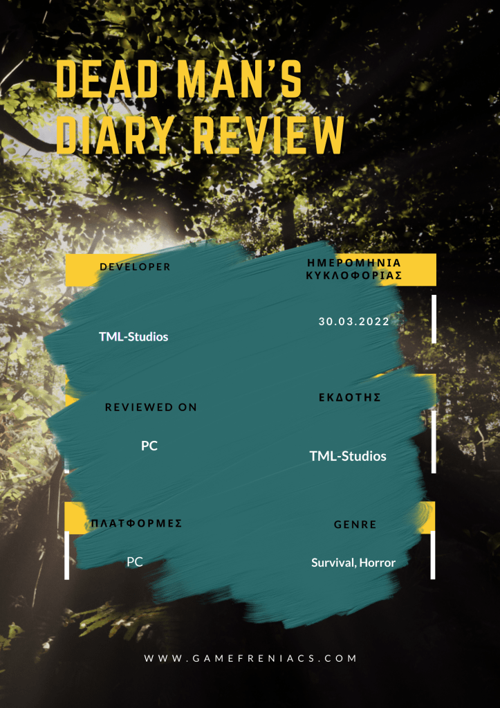 Το Dead Man’s Diary είναι ένα πολλά υποσχόμενο παιχνίδι. Έχει απολύτως εκπληκτικά φωτορεαλιστικά γραφικά. Διασκέδασα επίσης πολύ με το παιχνίδι στην αρχή. Με τρόμαξε, ειδικά όταν άρχισα να παίζω στο σκοτεινό δάσος λόγω των ανατριχιαστικών θορύβων. Η συλλογή πόρων σε ένα μέρος όπου μπορεί να ελλοχεύει ο κίνδυνος είναι συναρπαστική.