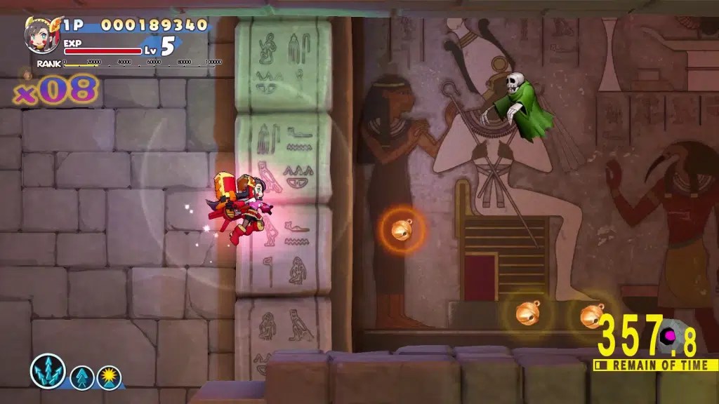 Αλλά παίξτε το επίπεδο ξανά με την Fine και θα διαπιστώσετε ότι οι νεράιδες ανήκουν στο παρελθόν. Το ίδιο και οι χρωματιστοί κρύσταλλοι. Δεν έχει καν ζωές. Αντίθετα, υπάρχει ένα χρονόμετρο που μετρά αντίστροφα στην κάτω δεξιά γωνία της οθόνης. Όταν φτάσει στο μηδέν, το παιχνίδι έχει τελειώσει και η λήψη χτυπημάτων κάνει την εξάντλησή της ζωής σας πιο γρήγορη. Ωστόσο, μπορείτε να επεκτείνετε τον χρόνο του παιχνιδιού σκοτώνοντας εχθρούς και συλλέγοντας τους κρυστάλλους τους. Και η Fine μπορεί επίσης να εναλλάσσει μεταξύ τριών τύπων επιθέσεων κατά βούληση.