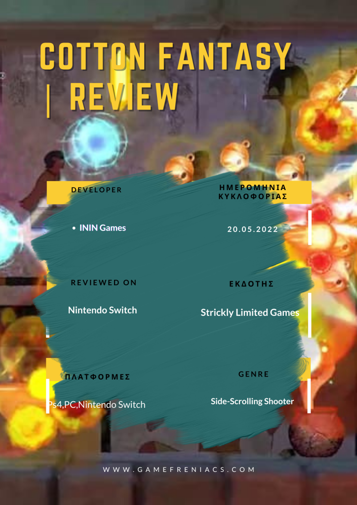Σίγουρα, μερικά από τα κλασικά παιχνίδια ήταν πολύ διασκεδαστικά, αλλά με τόσα shooter εκεί έξω, αφορούσαν περισσότερο τους σκληροπυρηνικούς θαυμαστές του είδους. Έτσι η ININ Games, για να κλείσει τους εορτασμούς 30 χρόνων, κυκλοφορεί τώρα ένα ολοκαίνουργιο σίκουελ, με την ονομασία Cotton Fantasy.