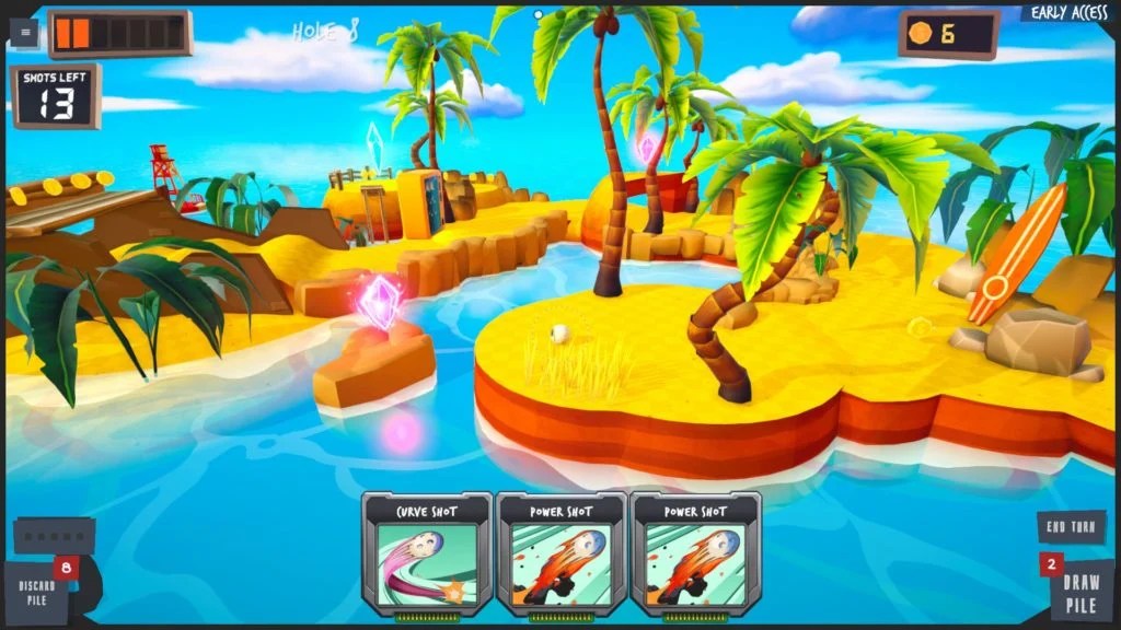 Οι βασικές κάρτες περιλαμβάνουν Power Shot, Curve και Lob οι οποίες είναι αυτονόητες. Ωστόσο, οι πιο ισχυρες, δίνουν στην μπάλα του γκολφ τη δυνατότητα να περάσει από μικρότερα κενά, να κολλήσει στο πρώτο πράγμα που αγγίζει, να ταξιδέψει μέσα από πύλες ή να επιβραδύνει την τροχία της με το Emergency Parachute.