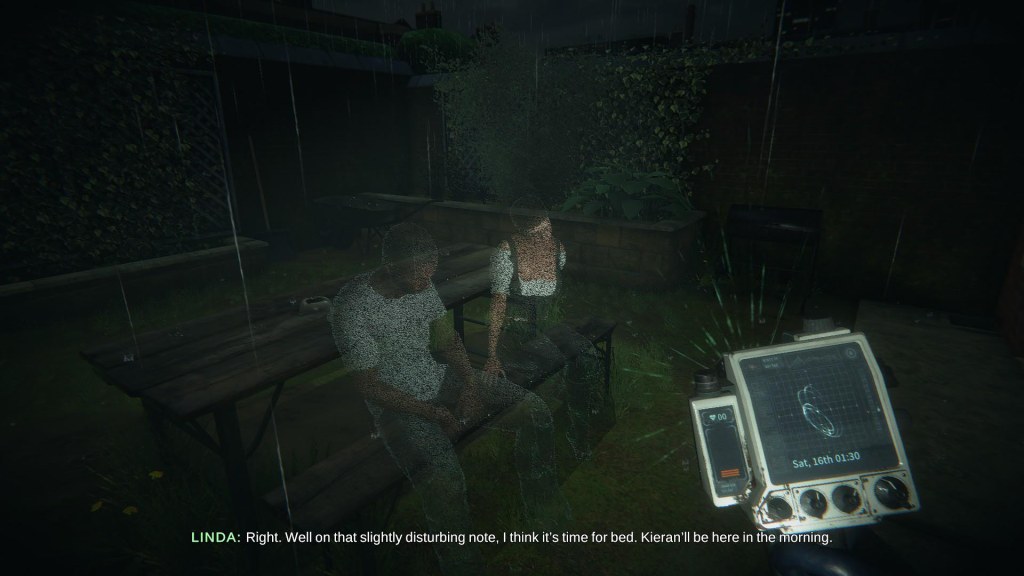 Όντας σε πρώτο πρόσωπο, είναι εύκολο να σας έρθουν στο μυαλό τίτλοι όπως το What Remains of Edith Finch, όπου ένας φαινομενικά άδειος χώρος κρύβει μικρά μυστικά και μια ενδιαφέρουσα πλοκή. Αυτό που ξεχωρίζει στο παιχνίδι της Cosmonaut Studios από τα υπόλοιπα, ωστόσο, είναι ο χάρτης του χρόνου του, μια απλή ιδέα που σας επιτρέπει να μετακινηθείτε πέρα δώθε σε διάφορα γεγονότα. Έτσι δίνεται η δυνατότητα στο παίκτη να παρακολουθεί, φανταστικά διαγράμματα των πρώην κατοίκων του σπιτιού που κάνουν την κανονική τους ζωή, με μια συνεχή βροχόπτωση έξω να σου θυμίζει την υποτιθέμενη μοίρα τους σε κάθε στροφή.