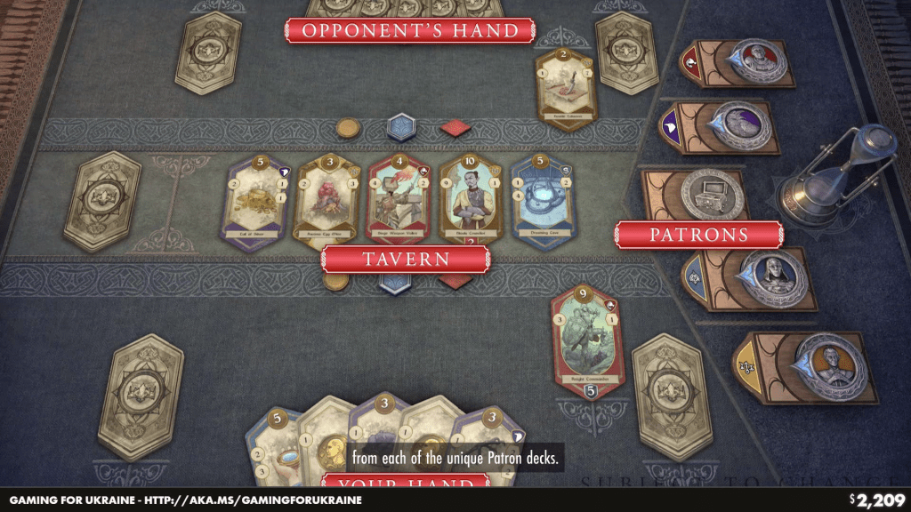 Μιλώντας για την αλλαγή ρυθμού, που εμφανίζεται στο High Isle DLC, είναι και μια ολοκαίνουργια λειτουργία παιχνιδιού που βοηθά να περάσει ο χρόνος μεταξύ αναζήτησης, εξορμήσεων στα dungeons και ανασκαφής για αρχαιότητες. Το Tales of Tribute είναι ένα ολοκαίνουργιο επιτραπέζιο παιχνίδι καρτών εντός παιχνιδιού που μπορεί να παιχτεί σε οποιαδήποτε ταβέρνα στον κόσμο του ESO.