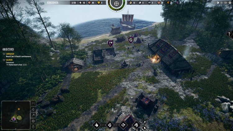Όλα ξεκινούν αρκετά υποσχόμενα, με ένα μακρύ σπίτι να έχει ήδη κατασκευαστεί και τους πόρους για τη δημιουργία των πρώτων αλυσίδων εφοδιασμού να είναι αρκετοί. Το φαγητό, από το κυνήγι και το ψάρεμα, και το ξύλο είναι οι προτεραιότητες. Οι παίκτες θα μπορούν σύντομα να αναβαθμίσουν την κύρια αίθουσα τους και να αποκτήσουν πρόσβαση σε περισσότερα κτίρια, όπως ναούς, πανδοχεία και άλλα. Θα πρέπει επίσης να βρουν τρόπους για να συλλέγουν μεταλλεύματα και πέτρες, να επεξεργάζονται και τα δύο και να διατηρούν σταθερά αποθέματα για να περάσουν τον χειμώνα και να διατηρήσουν τις ένοπλες δυνάμεις.