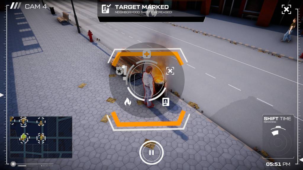 Η βάρδια σας υπαγορεύει το χρόνο παιχνιδιού. Ένας μικρός μετρητής κάτω δεξιά θα σας ενημερώσει πόση ώρα έχετε μέχρι να σχολάσετε. Μόλις ολοκληρωθεί η βάρδια σας, λαμβάνετε μια αναφορά κατάστασης σχετικά με την απόδοση σας και πόσα συμβάντα ολοκληρώθηκαν (εφάπαξ συμβάντα, όπως ο εντοπισμός συγκεκριμένων εγκληματιών). Η μείωση του ποσοστού εγκληματικότητας σας μεταφέρει στους επόμενους τομείς, αλλά αυτό είναι κυρίως για να λάβετε περισσότερη χρηματοδότηση, ώστε να μπορείτε να ρίξετε το βλέμμα σας σε όλη την πόλη και να μην χάσετε τίποτα.
