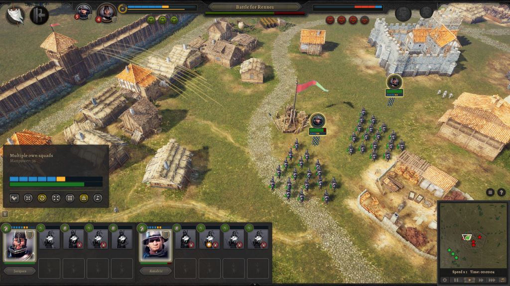 Στον χάρτη μάχης, θα έχετε τον έλεγχο έως και εννέα μονάδων ανά στρατό, με μικρές εξαιρέσεις. Δύο στρατοί ανά πλευρά συν μια τοπική φρουρά μπορούν να λάβουν μέρος, και στην πραγματικότητα φαίνεται αρκετά εντυπωσιακό. Εδώ, πρέπει να νοιάζεστε για πράγματα όπως η εξισορρόπηση της μονάδας, το ηθικό, η πλευρική τοποθέτηση και η φόρτιση. Είναι πολύ ενδιαφέρον σαν αποτέλεσμα!