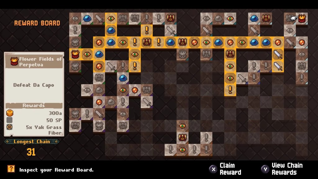 Εκτός από όλα αυτά, το συνολικό σύστημα προόδου στο Chained Echoes είναι αρκετά διαφορετικό από το συνηθισμένο. Δεν υπάρχουν τυχαίες συναντήσεις, επομένως δεν μπορεί να υπάρξει grinding για XP. Αντίθετα, κερδίζετε level μέσω συγκεκριμένων γεγονότων και μαχών αντί να γεμίζετε μια γραμμή XP με κάθε μάχη. Αυτό σημαίνει ότι το Chained Echoes είναι ουσιαστικά πιο γραμμικό στο σχεδιασμό που για μένα είναι κάτι καλοδεχούμενο.