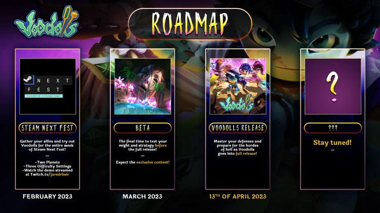 Η Tate Multimedia ανακοίνωσε την κυκλοφορία του «Voodolls», ενός multiplayer tower defense παιχνιδιού που αναπτύχθηκε από το γαλλικό indie στούντιο SideRift. Οι παίκτες θα μπορούν να ξεκινήσουν μια online co-op ή solo περιπέτεια στο Steam από τις 13 Απριλίου 2023.