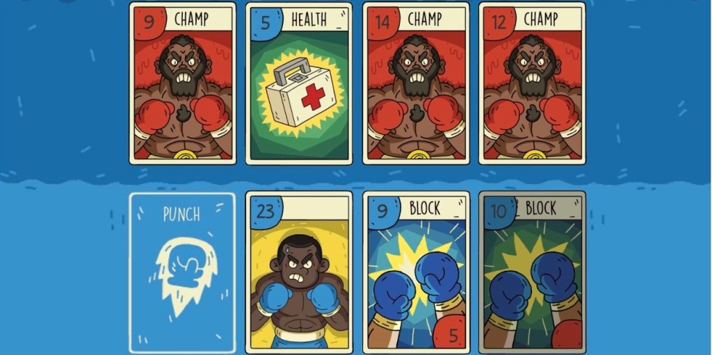 Αν έχετε παίξει Card Crawl, το παιχνίδι μπορεί να σας φαίνεται οικείο. Το Deck ‘Em! αντικαθιστά τα γάντια του μποξ αντί για σπαθιά και χτυπήματα από τον πρωταθλητή αντί αράχνες και καλικάντζαρους, με αποτέλεσμα μια παρόμοια εμπειρία παιχνιδιού. Η μόνη σημαντική διαφορά μεταξύ των δύο είναι ότι το Card Crawl προσφέρει μεγαλύτερο βάθος και δυνατότητα αναπαραγωγής από το Deck ‘Em!. Ενώ το τελευταίο εισάγει ένα σύστημα μπλοκ, δεν κάνει πολλά για να το ξεχωρίσει από την έμπνευσή του.