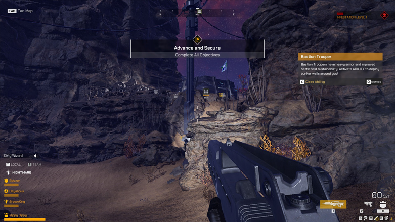 Με ομάδες τεσσάρων παικτών, η ομαδική εργασία είναι απαραίτητη για την επιτυχία. Ενώ όλες οι ομάδες εργάζονται για τους ίδιους στόχους σε κάθε χάρτη, ο χωρισμός σε μικρότερες ομάδες επιτρέπει καλύτερο συντονισμό και υποστήριξη. Αν και οι μάχες εκτείνονται σε μεγάλες περιοχές με αρκετή κάθετη θέση, η προσκόλληση μεταξύ τους εξασφαλίζει μεγαλύτερες πιθανότητες επιβίωσης ενάντια στην αδυσώπητη ορδή των Αραχνιδών.
