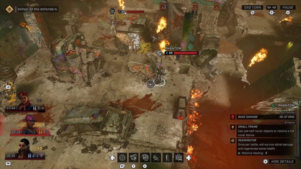 Οι μηχανισμοί μάχης στο Showgunners θα είναι σίγουρα οικείοι σε όποιον έχει παίξει XCOM ή παρόμοια παιχνίδια turn-based. Κάθε γύρος σας δίνει δύο πόντους δράσης, οι οποίοι μπορούν να δαπανηθούν σε ενέργειες όπως η σκοποβολή ή η συμμετοχή σε επιθέσεις σώμα με σώμα, τερματίζοντας ουσιαστικά τη σειρά αυτού του χαρακτήρα. Παρά το γεγονός ότι ήμουν συχνά πλαισιωμένος απο πολύ περισσότερους αντιπάλους, ποτέ δεν ένιωσα κατακλυσμένος από τη δυσκολία του παιχνιδιού – αντίθετα, μου έδινε συνεχώς ευκαιρίες να χρησιμοποιήσω έξυπνα το cover, να χρησιμοποιήσω μηχανισμούς overwatch και να τοποθετήσω στρατηγικά τους χαρακτήρες μου για να ξεπεράσω τις προκλήσεις.