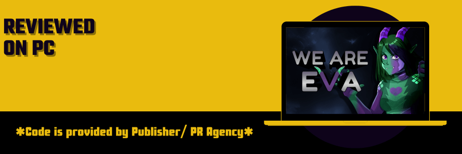 Το We are Eva είναι ένα εξαιρετικά δουλεμένο παιχνίδι πλατφόρμας που διακοσμείται με γοητευτικά pixel art γραφικά. Αναπτύχθηκε και εκδόθηκε από την Totally Normal Creature και έκανε το ντεμπούτο του στο Steam στις 16 Ιουνίου 2023.