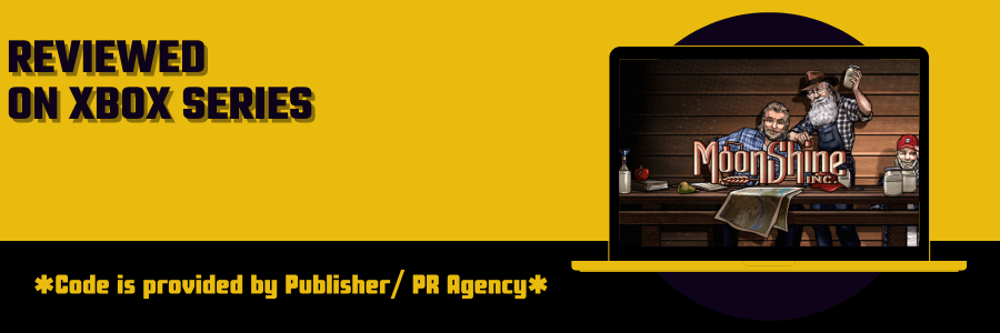 Το Moonshine Inc, όπως υποδηλώνει το όνομά του, είναι ένα παιχνίδι που βάζει τους παίκτες στο ρόλο του ιδιοκτήτη ενός αποστακτηρίου, που προσπαθεί να βγάλει τα προς το ζην στον κόσμο της παράνομης απόσταξης. Αυτή το review, βασισμένη στην νέα έκδοση του παιχνιδιού για κονσόλες, εμβαθύνει στις διάφορες πτυχές του Moonshine Inc. Ιδιαίτερες ευχαριστίες εκφράζονται στην Klabater για την παροχή του review key.