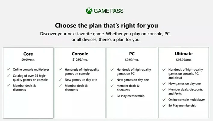 Το Xbox Game Pass Core θεωρείται η επόμενη εξέλιξη του Xbox Live Gold και προσφέρει στους παίκτες μια βελτιωμένη εμπειρία πολλαπλών παικτών και μια επιλεγμένη συλλογή από πάνω από 25 παιχνίδια για να απολαμβάνουν με τους φίλους τους από όλο τον κόσμο. Η συνδρομή θα παρέχει επίσης στα μέλη πρόσβαση σε αποκλειστικές προσφορές, εμπλουτίζοντας περαιτέρω την εμπειρία τους στο gaming.