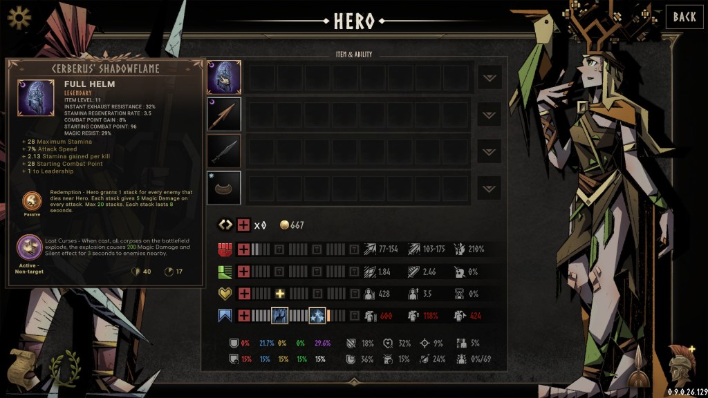 Η συλλογή εξοπλισμού για τον Dio ενισχύει τα στατιστικά και τις δεξιότητες, συμβάλλοντας στο στοιχείο του Action RPG. Ωστόσο, εδώ υπάρχει κάποια απογοήτευση με το σύστημα προόδου του εξοπλισμού, αναφέροντας την γρήγορη υπέρβαση επιπέδου και τις τυχαίες αποδόσεις ως ατελείς και χωρίς την κατάλληλη ισορροπία.