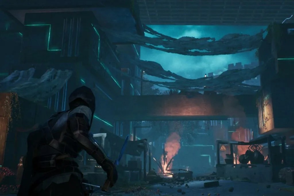Καθώς ξεκινά το παιχνίδι, οι παίκτες βρίσκονται σε σκοτεινούς δρόμους, περιτριγυρισμένοι από φουτουριστικά, αλλά ερειπωμένα κτίρια. Η αντιοπαραβολή των λαμπερών διαδρόμων έναντι του υποβαθμισμένου υπόβαθρου των ψηλών ουρανοξυστών δημιουργεί μια μοναδική αντίθεση, ξεχωρίζοντας το Deathbound από τα συνηθισμένα περιβάλλοντα των Soulslike παιχνιδιών.