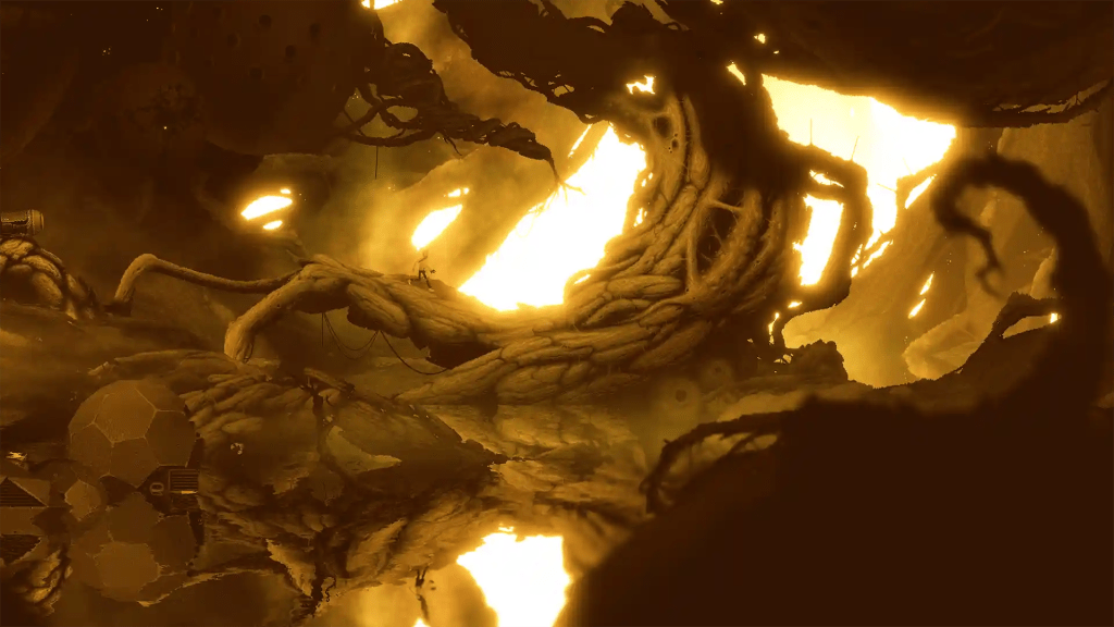 Ο κόσμος του παιχνιδιού είναι σχολαστικά σχεδιασμένος με βιομηχανικά σχέδια και pixel-perfect λεπτομέρεια. Από τα στοιχειωμένα σκηνικά μέχρι τις λεπτές περιβαλλοντικές ενδείξεις, κάθε οθόνη μοιάζει σκόπιμα χτισμένη για να τραβήξει τον παίκτη βαθύτερα στον μυστηριώδη του κόσμο. Η έλλειψη εμφανών μεταβάσεων μεταξύ των επιπέδων ενισχύει την εμβύθιση. Τα επίπεδα ρέουν φυσικά, συχνά επαναχρησιμοποιώντας στοιχεία για να διατηρήσουν την οπτική συνέπεια χωρίς να γίνονται επαναληπτικά.