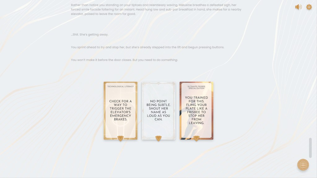 Ο παίκτης κάνει επιλογές που καθορίζουν την εξέλιξη της ιστορίας και το προφίλ του υπαλλήλου του. Δεν υπάρχουν «σωστές» ή «λάθος» αποφάσεις – μόνο συνέπειες. Η SMYRNACORP αξιολογεί κάθε σας βήμα, όπως ακριβώς και μια πραγματική εταιρεία.