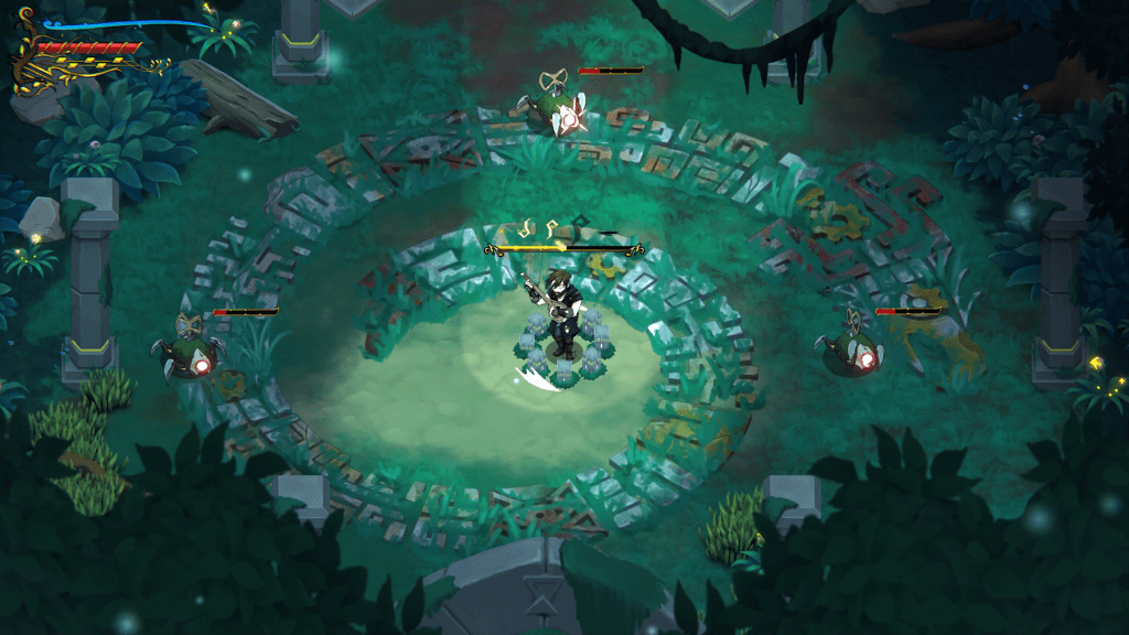 Για όσους αναζητούν την τελειοποίηση της ανάπτυξης του χαρακτήρα τους (build), το παιχνίδι προσφέρει βαθιά προσαρμογή μέσω συλλεκτικών Τοτέμ που παρέχουν παθητικά μπόνους και αναβαθμίσεις όπλων που επιτυγχάνονται σε Πηγές Κόκκινης Ουσίας (Red Essence Fountains). Η μέγιστη αναβάθμιση των όπλων ξεκλειδώνει το Virtuoso Mode, μια κατάσταση υψηλής ισχύος που ενισχύει περαιτέρω τις ικανότητες του Ταξιδιώτη.