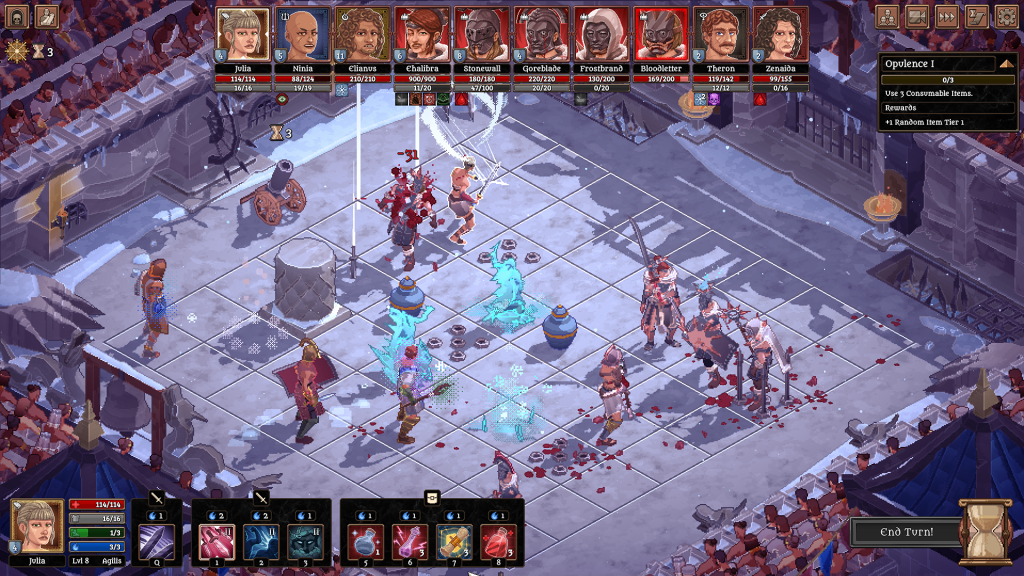 | Roguelite Ρίσκο | Κάθε μονομάχος είναι θνητός. Αν πέσει, ο εξοπλισμός και η εμπειρία του χάνονται για πάντα. |