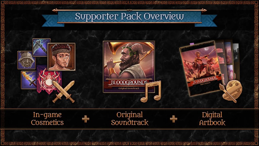 Για όσους θέλουν να μπουν στην αρένα με στυλ, ένα Supporter Pack θα είναι διαθέσιμο κατά την κυκλοφορία. Αυτό περιλαμβάνει το ατμοσφαιρικό Original Soundtrack, ένα Digital Artbook που παρουσιάζει την εξέλιξη του dark fantasy στυλ, και αποκλειστικά in-game cosmetics — συμπεριλαμβανομένων μοναδικών λαβάρων και premium armor skins.