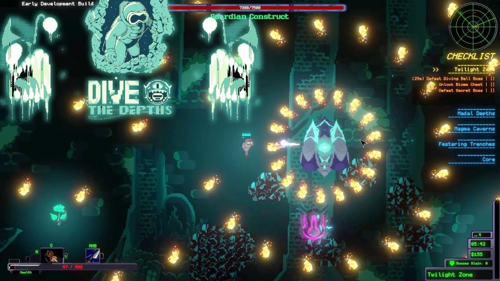 Το Dive the Depths δανείζεται στοιχεία από το Risk of Rain, συγκεκριμένα τον μηχανισμό όπου η δυσκολία αυξάνεται όσο περισσότερο παραμένετε σε μια περιοχή. Αυτό επιβάλλει έναν τακτικό υπολογισμό «ρίσκου vs ανταμοιβής»: θα καθαρίσετε το επίπεδο για πόρους ή θα προχωρήσετε πριν οι εχθροί γίνουν υπερβολικά πολλοί;