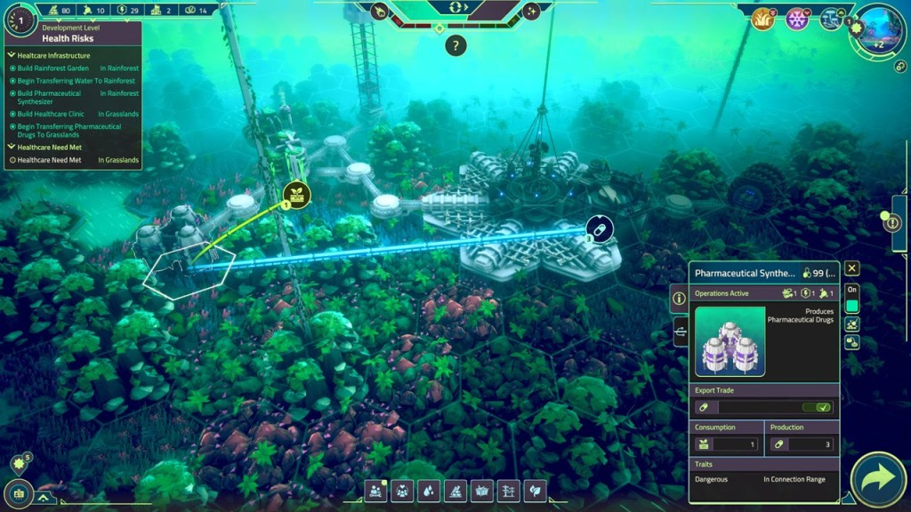 Η διαχείριση πόρων έχει φτάσει σε νέο επίπεδο πολυπλοκότητας. Η εξειδίκευση που απαιτείται για την επιβίωση στο Rainforest σημαίνει ότι δεν μπορείτε πλέον να λειτουργείτε απομονωμένα. Το εμπόριο πόρων μεταξύ των βιωμάτων είναι πλέον ένας ζωτικός μηχανισμός, αναγκάζοντας τους Φροντιστές να βελτιστοποιήσουν τις αλυσίδες παραγωγής σε ολόκληρο το σκάφος.